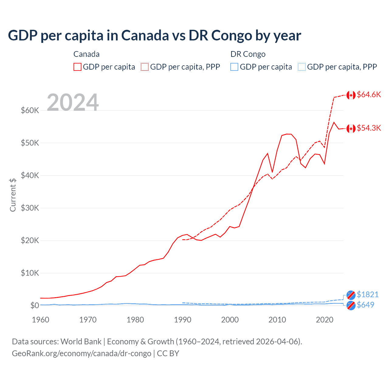 Canada vs DR Congo GDP by year