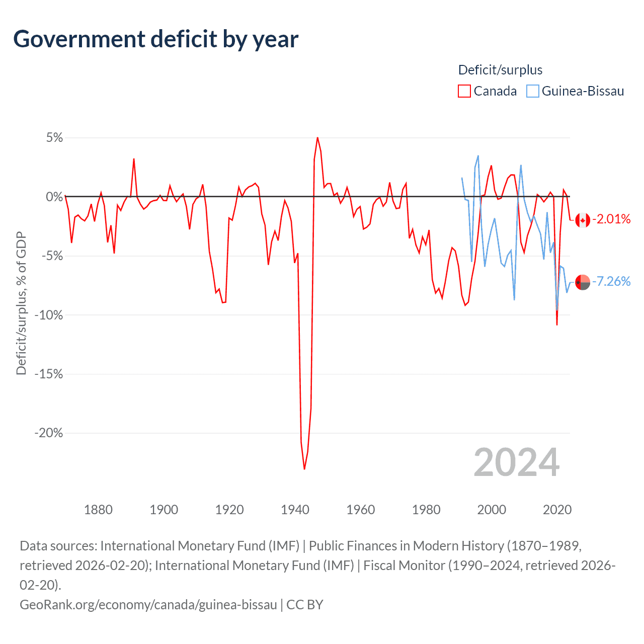 - International Monetary Fund (IMF) | Public Finances in Modern History (1870–1996, retrieved 2026-02-20)