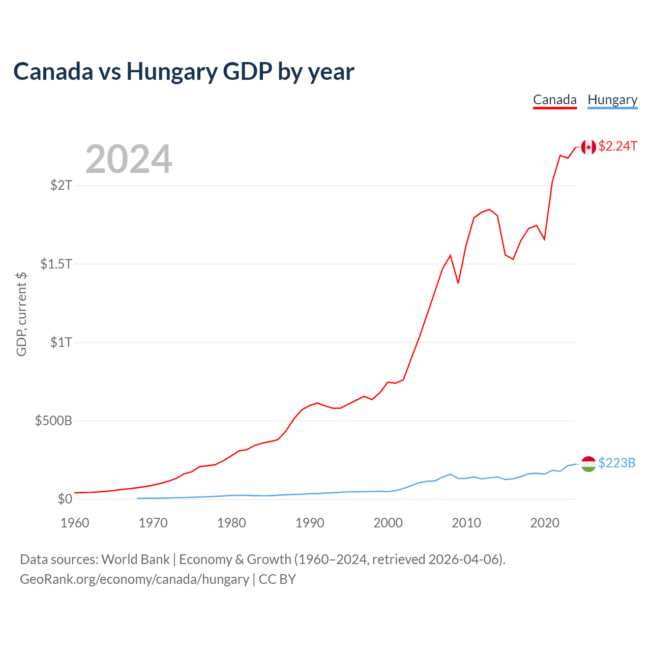 Canada vs Hungary GDP by year