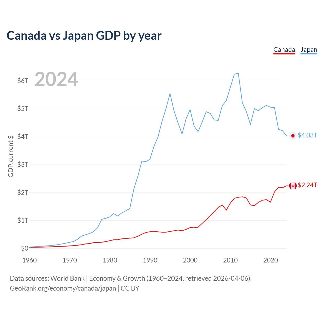 Canada vs Japan GDP by year