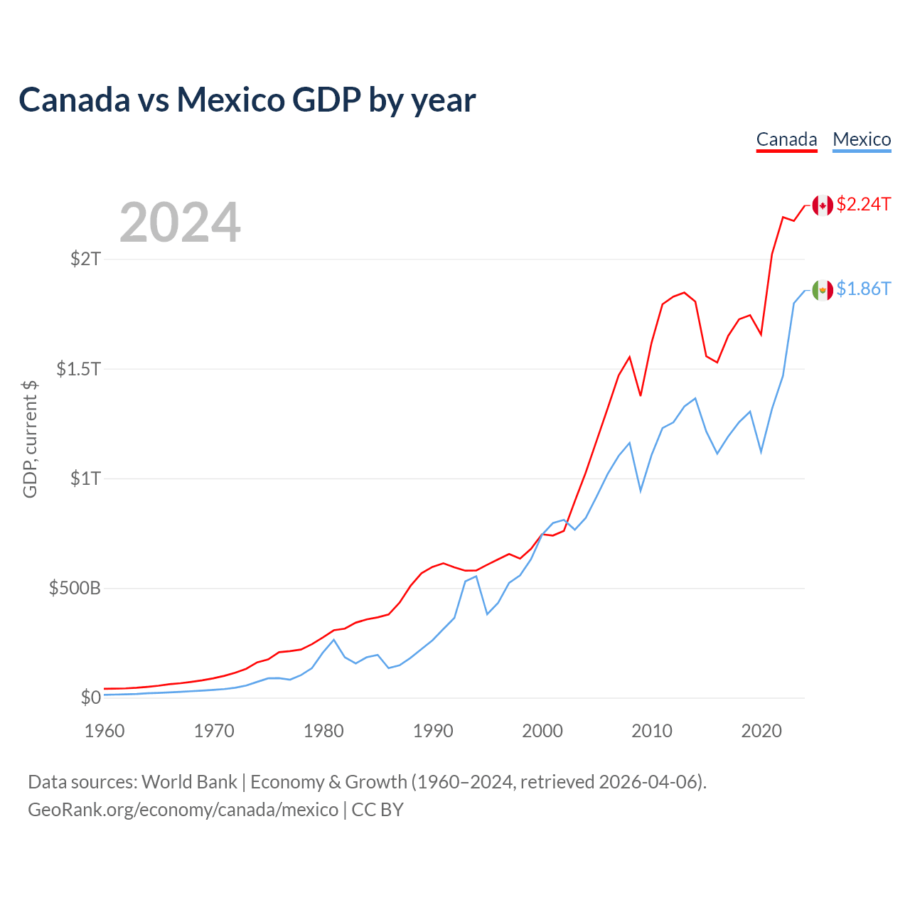 Canada vs Mexico GDP by year