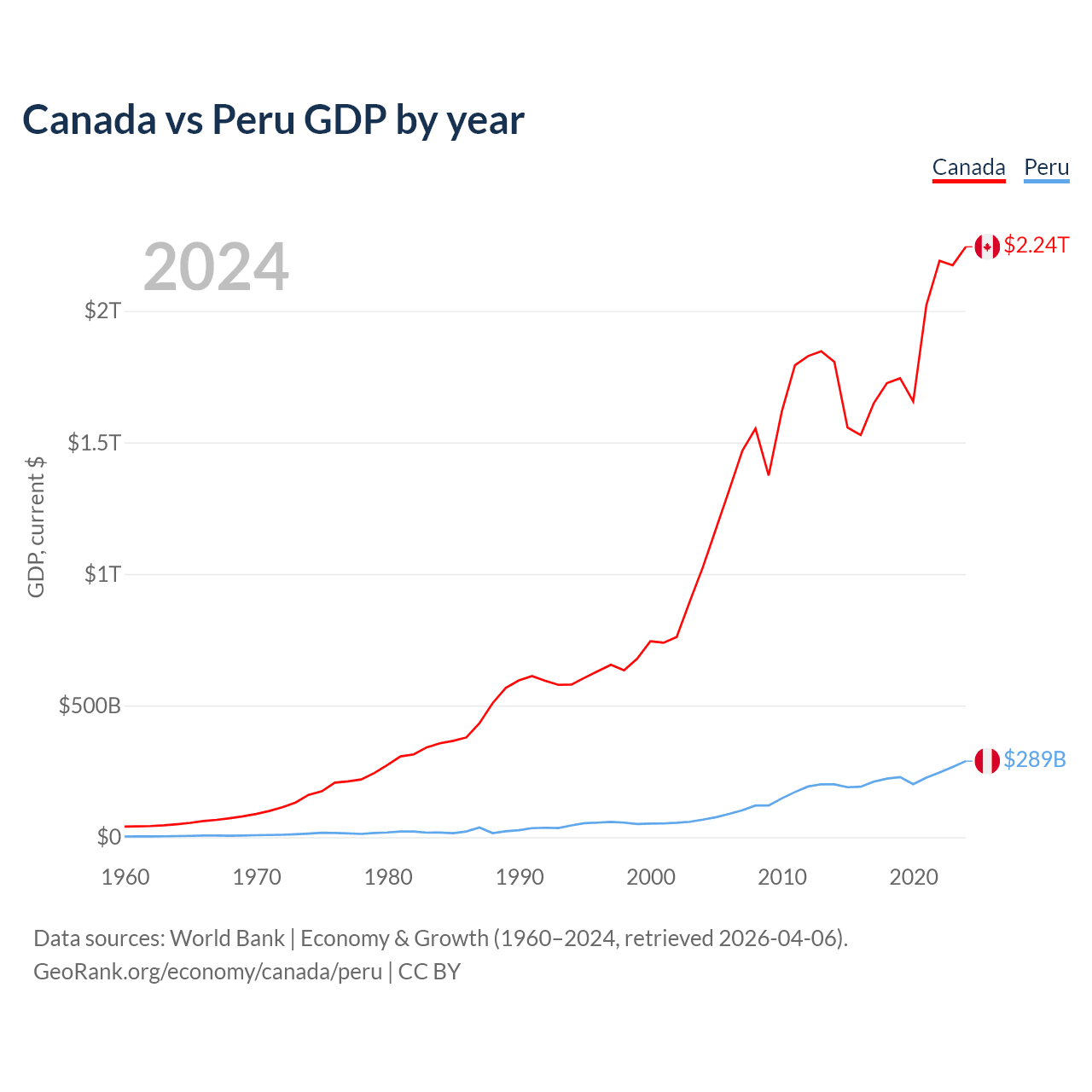 Canada vs Peru GDP by year