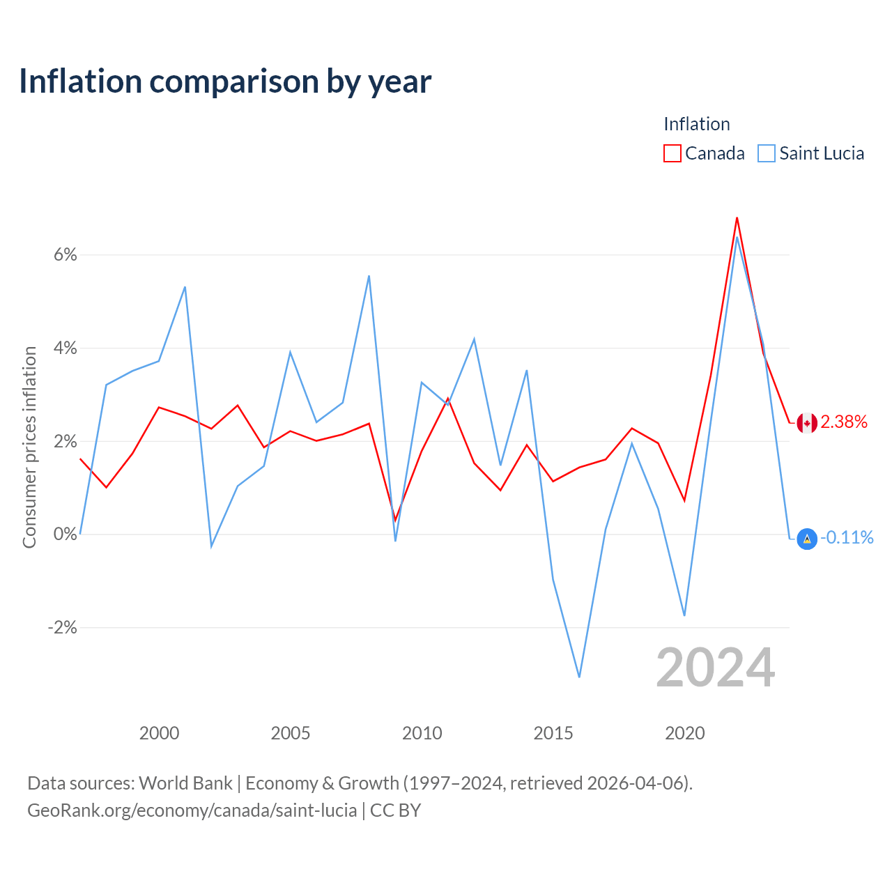 Canada vs Saint Lucia GDP by year