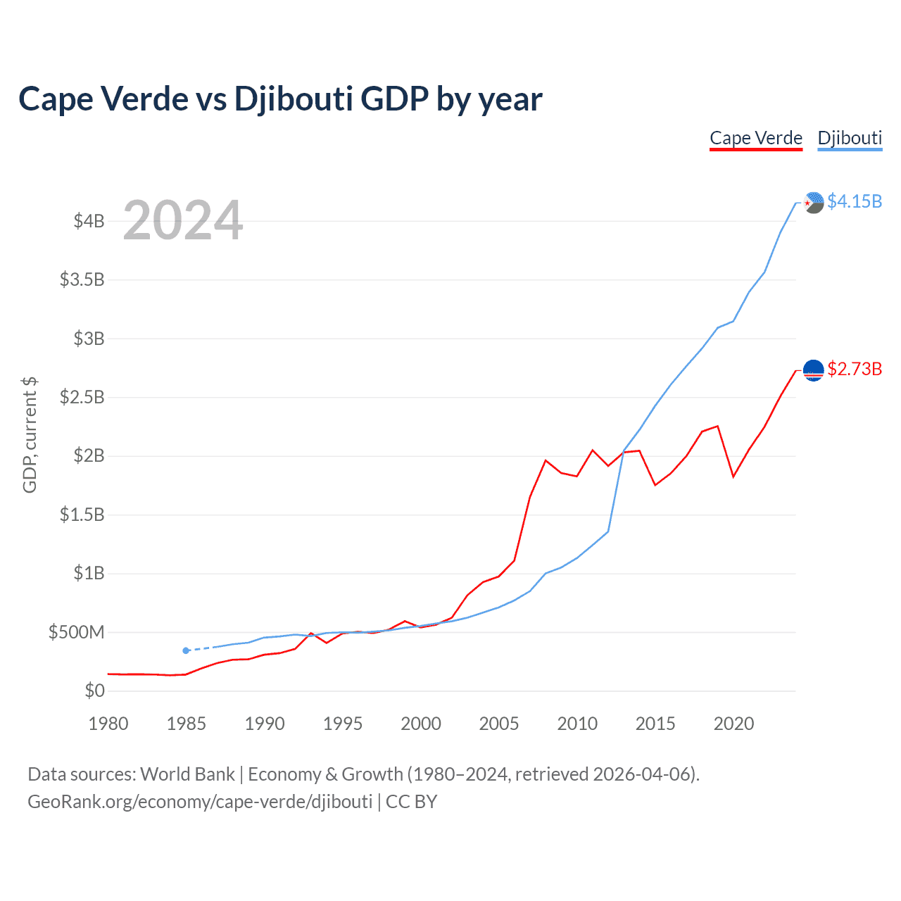 Cape Verde vs Djibouti GDP by year