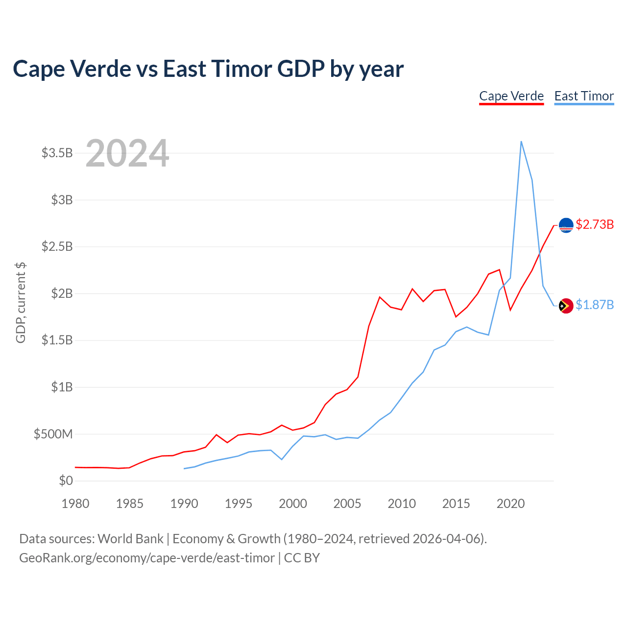 Cape Verde vs East Timor GDP by year