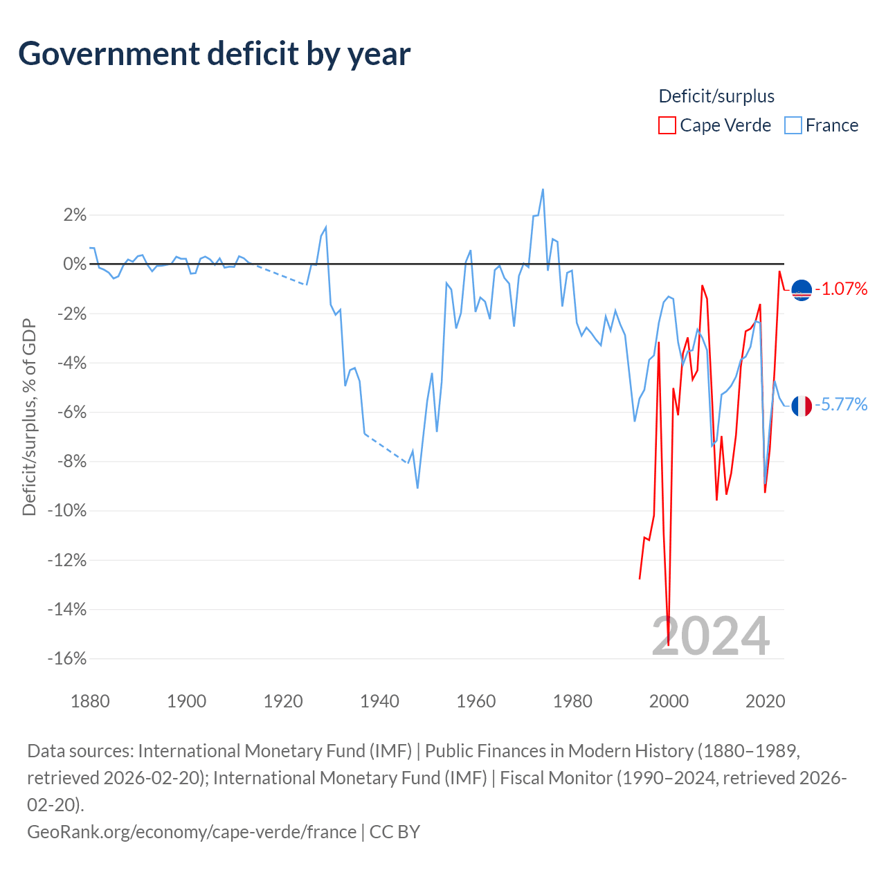- International Monetary Fund (IMF) | Public Finances in Modern History (1880–1996, retrieved 2026-02-20)