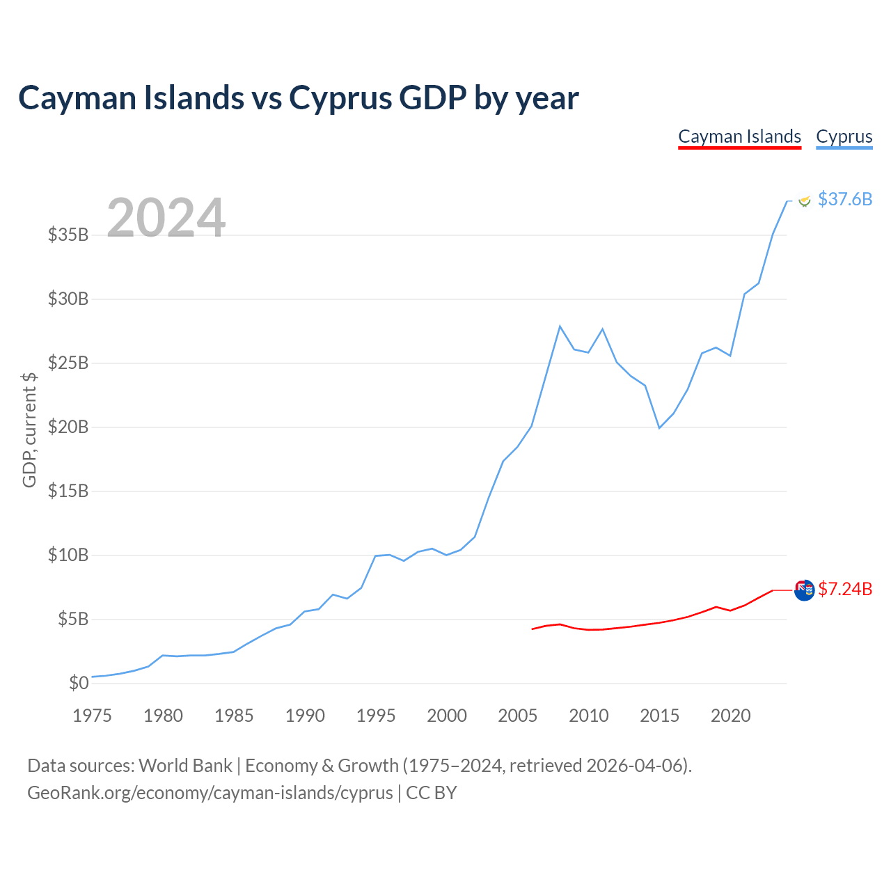 Cayman Islands vs Cyprus GDP by year