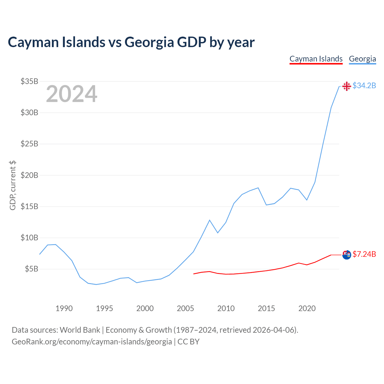 Cayman Islands vs Georgia GDP by year