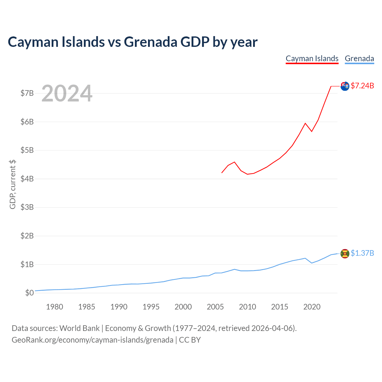 Cayman Islands vs Grenada GDP by year