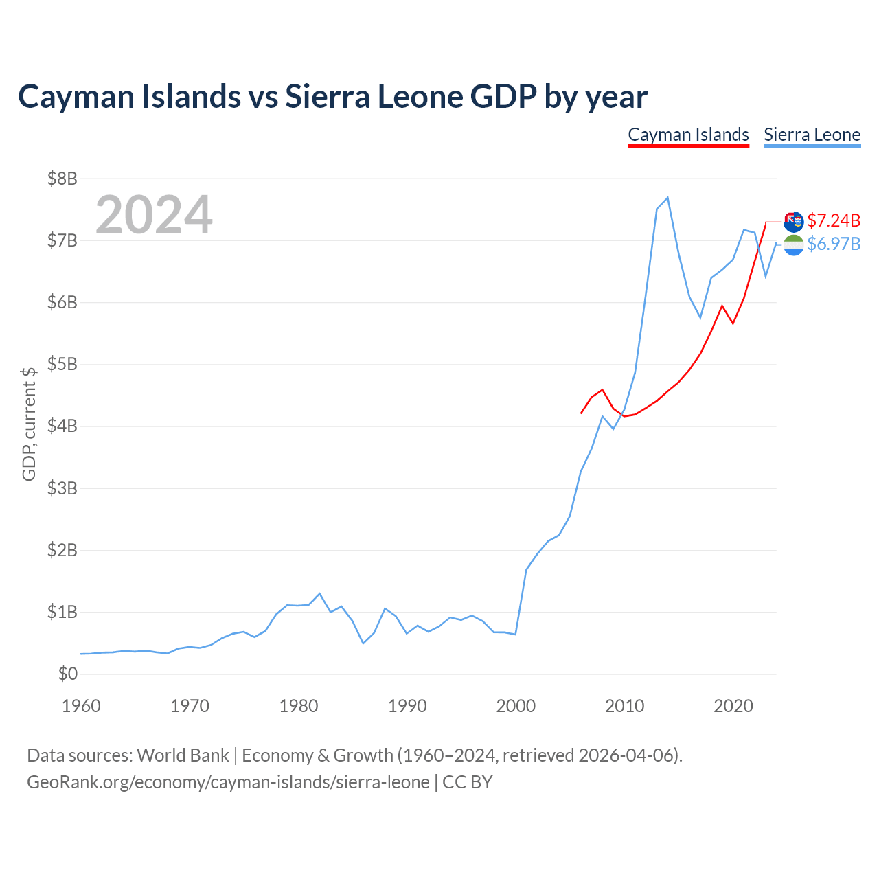 Cayman Islands vs Sierra Leone GDP by year
