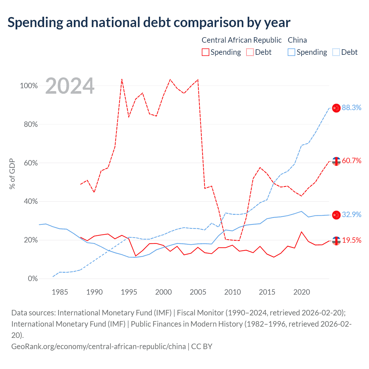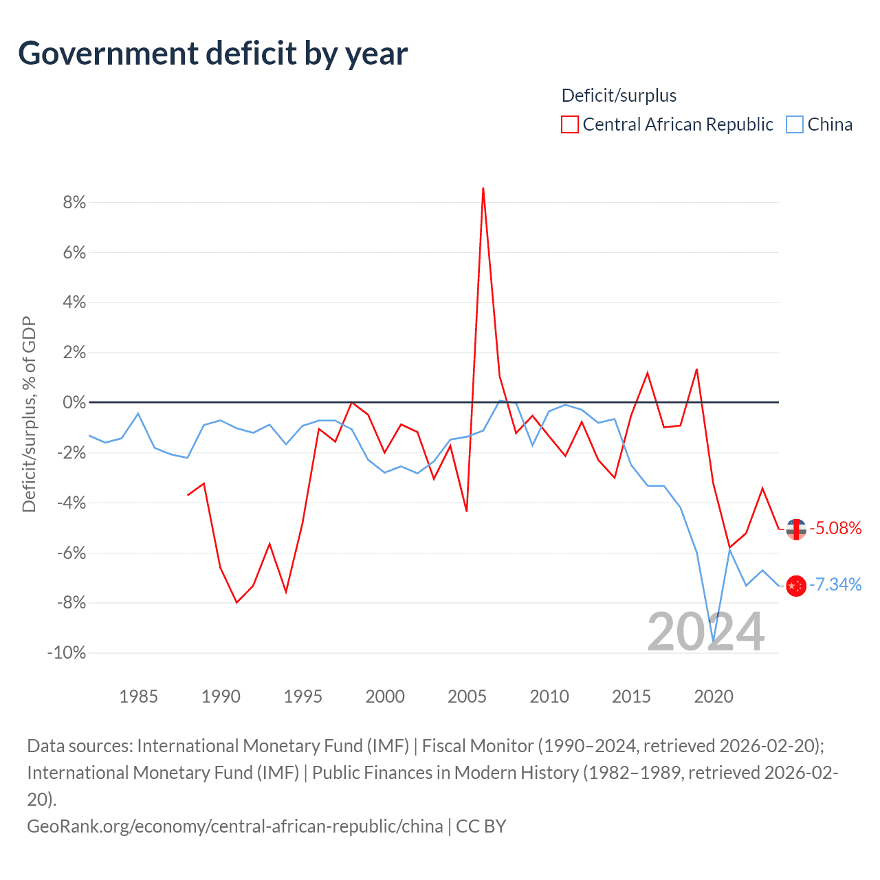 - International Monetary Fund (IMF) | Fiscal Monitor (1990–2024, retrieved 2026-02-20)
