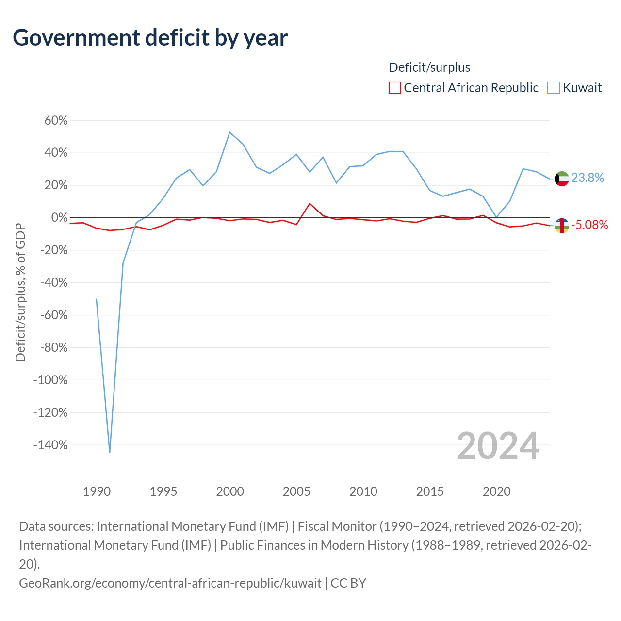 - International Monetary Fund (IMF) | Fiscal Monitor (1990–2024, retrieved 2026-02-20)