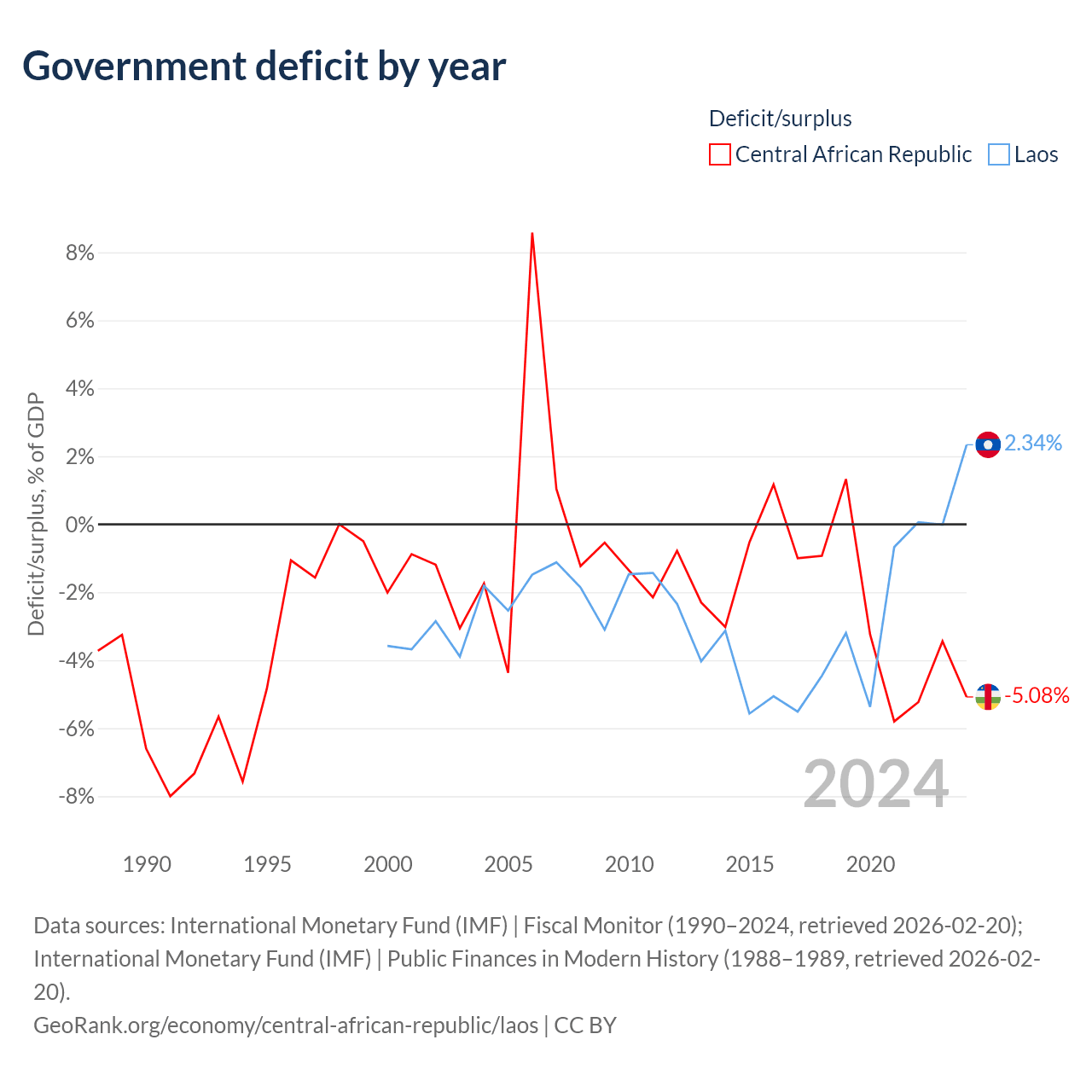 - International Monetary Fund (IMF) | Fiscal Monitor (1990–2024, retrieved 2026-02-20)