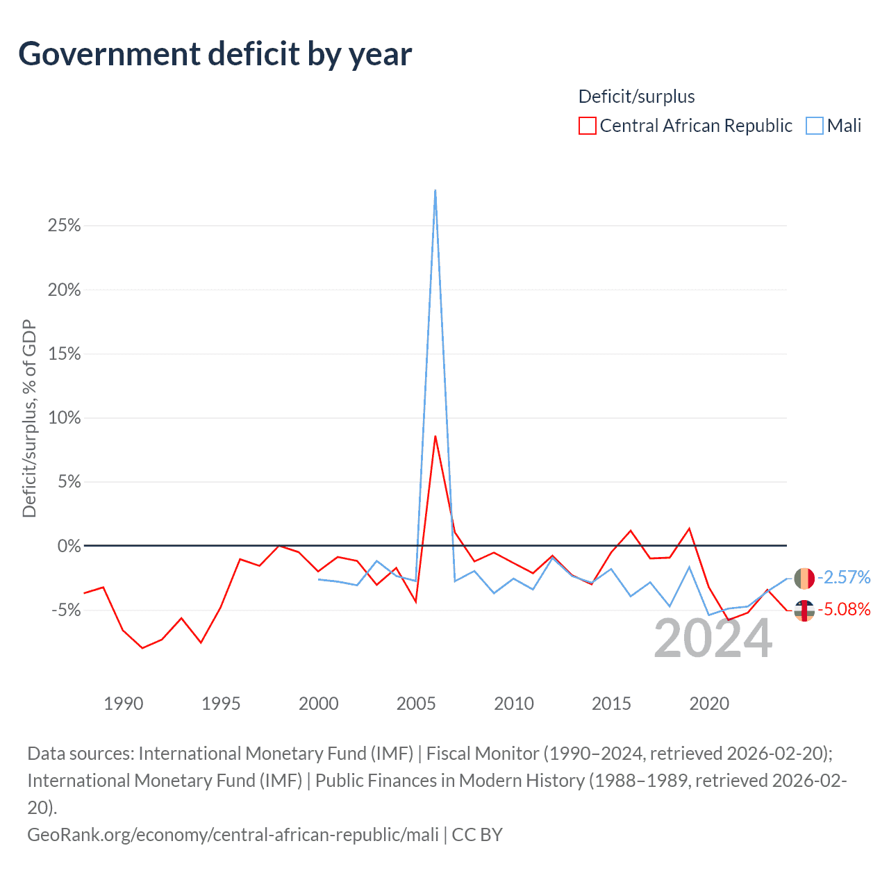 - International Monetary Fund (IMF) | Fiscal Monitor (1990–2024, retrieved 2026-02-20)