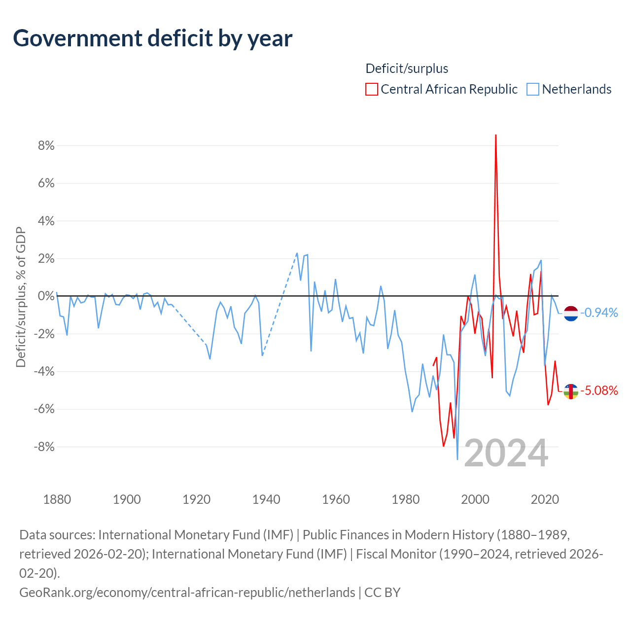 - International Monetary Fund (IMF) | Public Finances in Modern History (1880–1996, retrieved 2026-02-20)