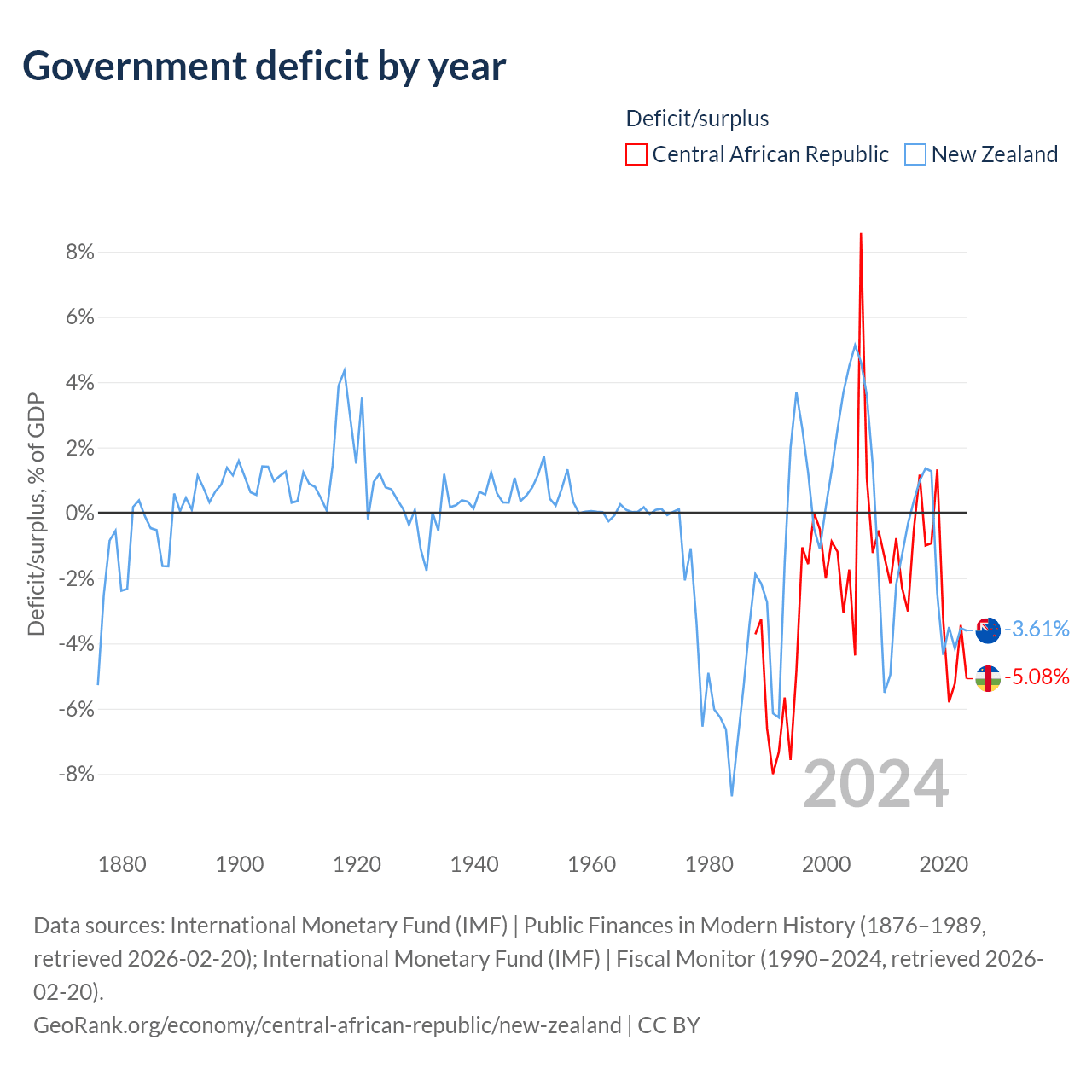 - International Monetary Fund (IMF) | Public Finances in Modern History (1876–1996, retrieved 2026-02-20)