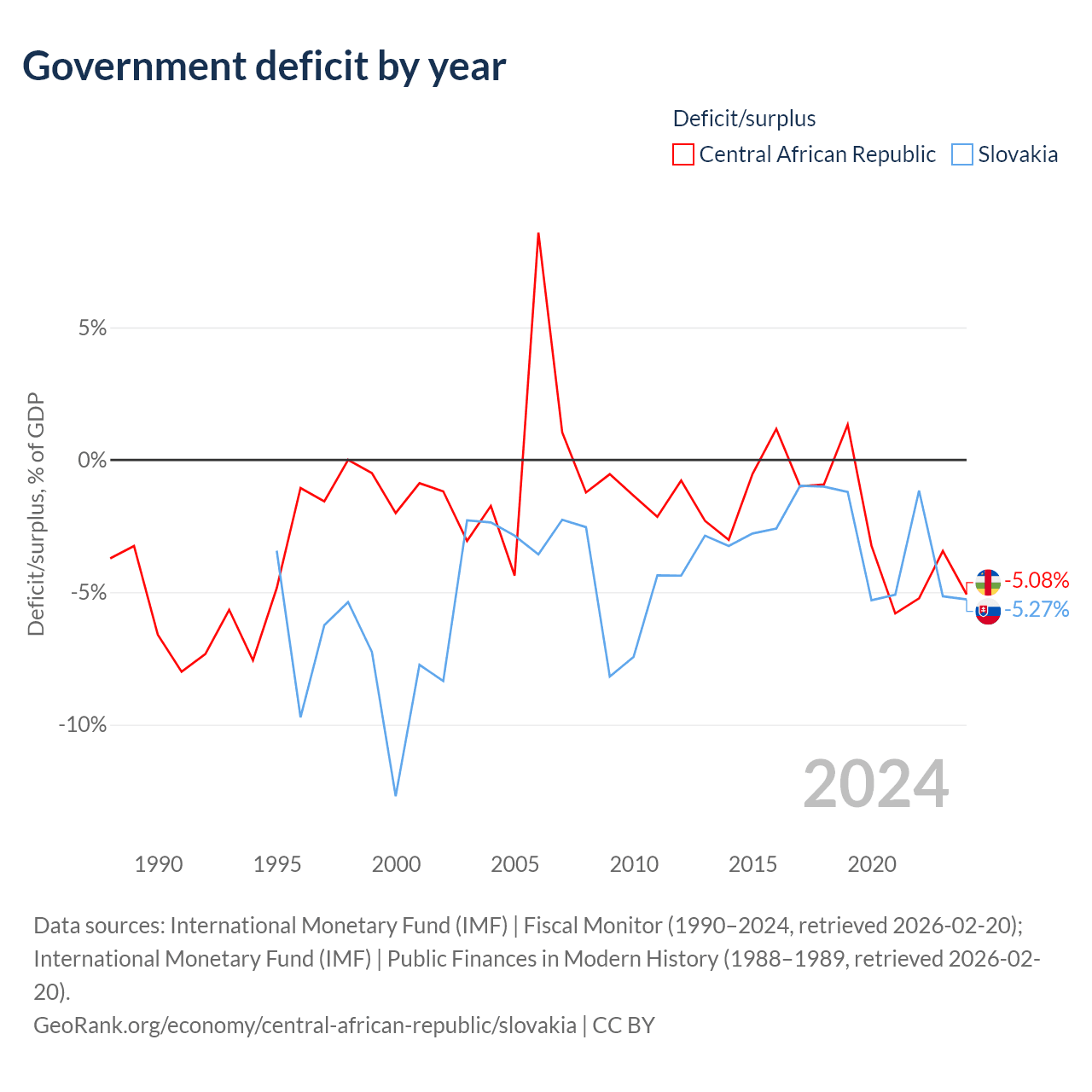 - International Monetary Fund (IMF) | Fiscal Monitor (1990–2024, retrieved 2026-02-20)