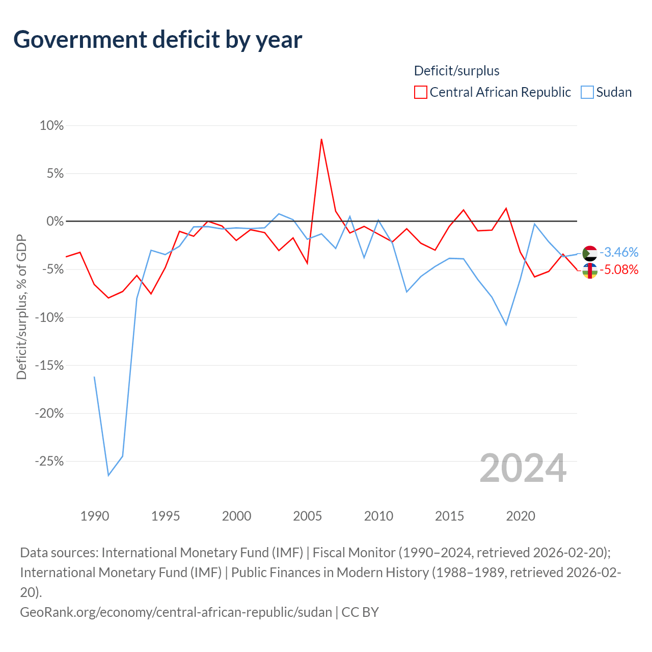 - International Monetary Fund (IMF) | Fiscal Monitor (1990–2024, retrieved 2026-02-20)