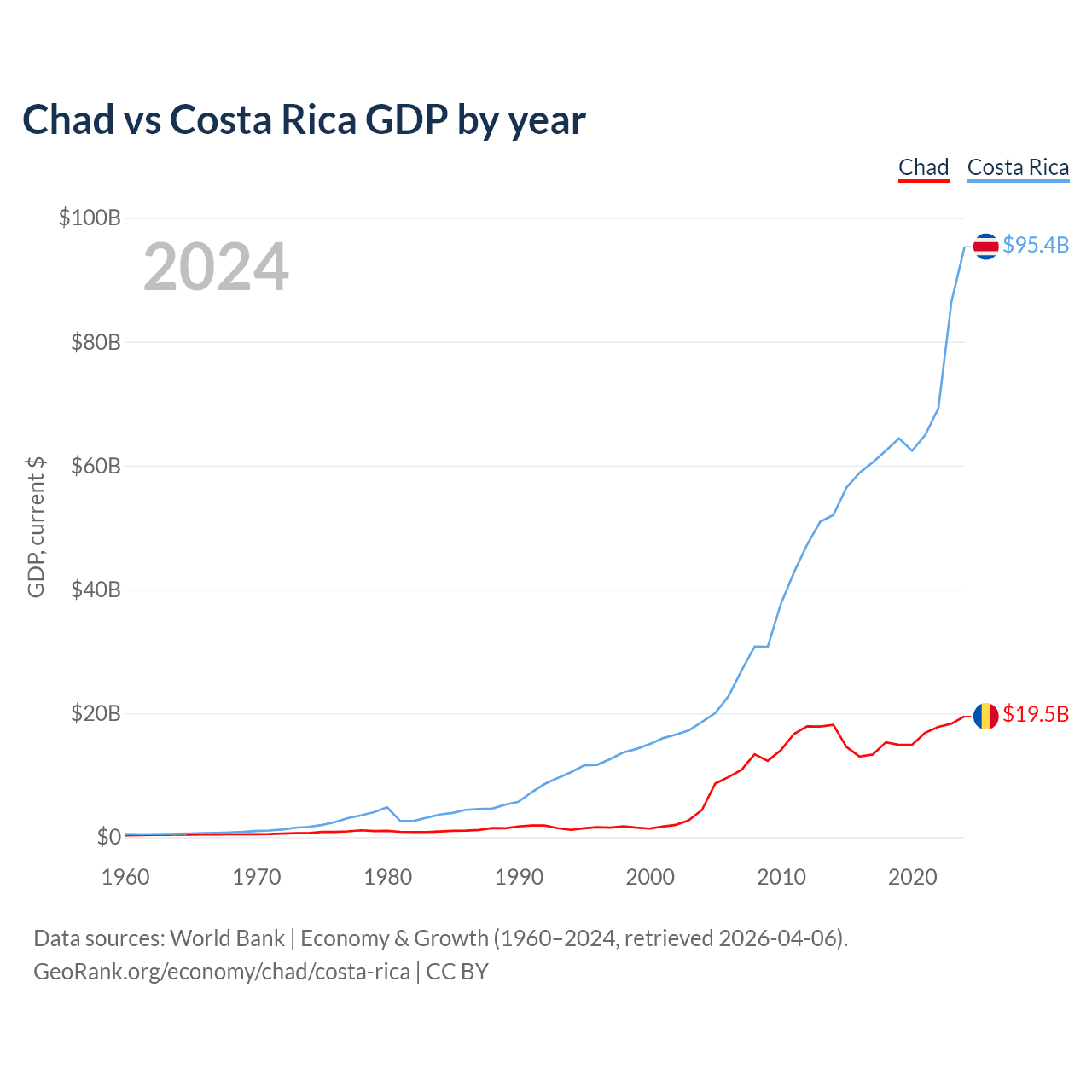 Data sources: World Bank | Economy & Growth (1960–2024, retrieved 2026-04-06).