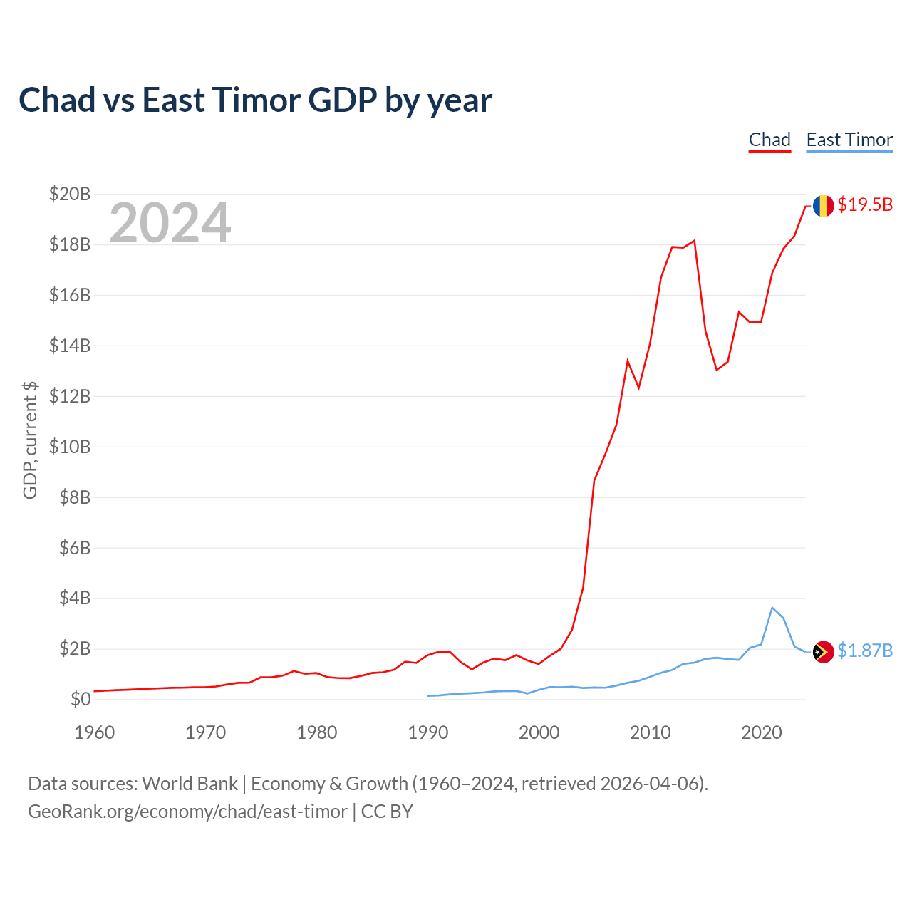 Chad vs East Timor GDP by year