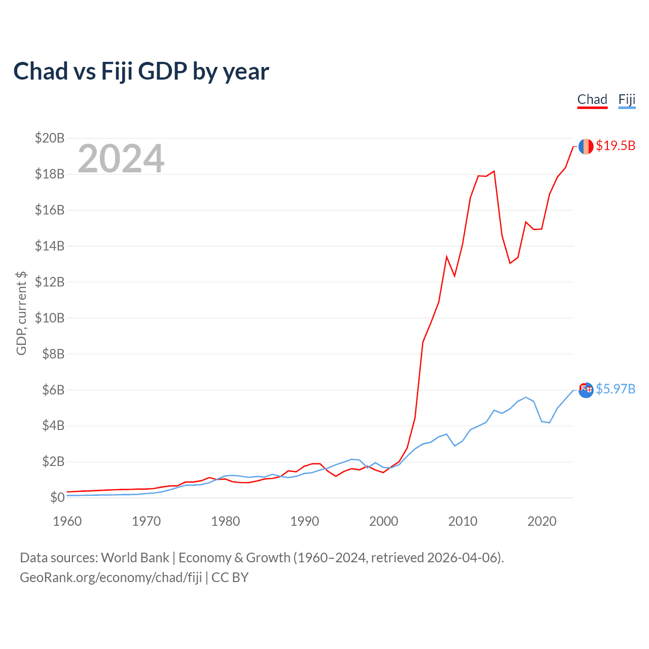 Chad vs Fiji GDP by year