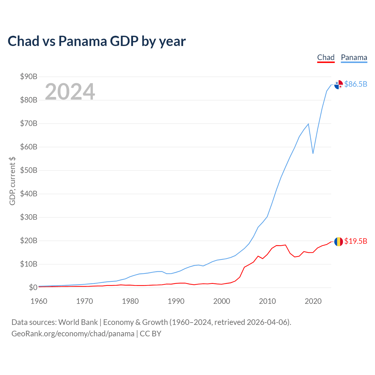 Chad vs Panama GDP by year