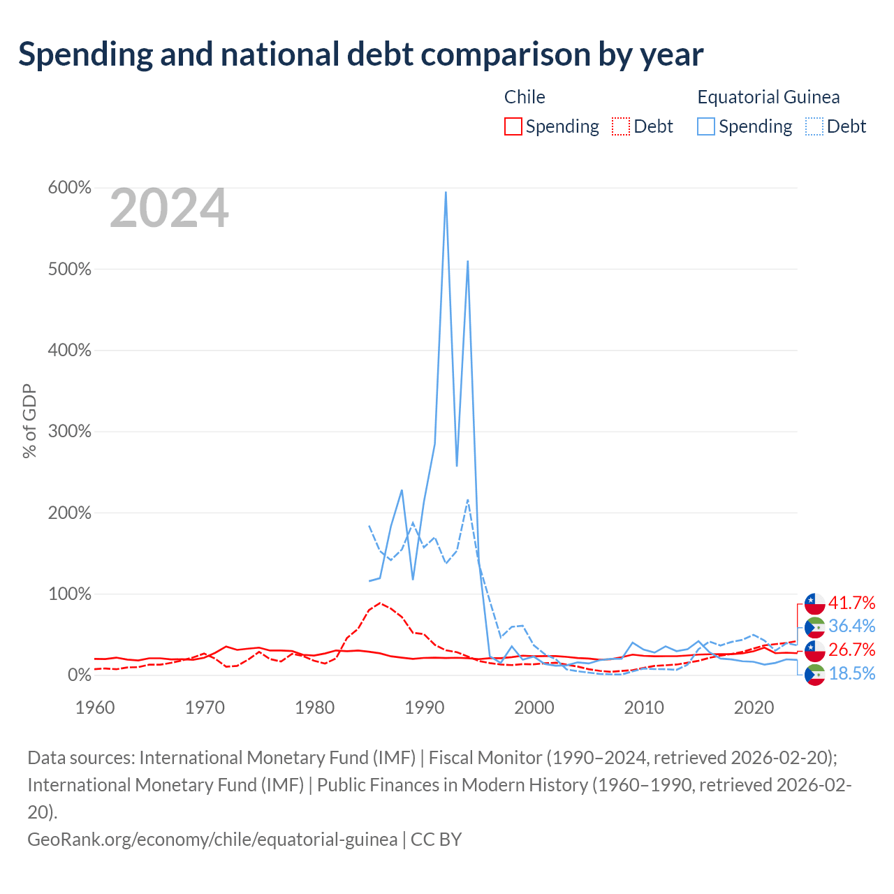 Chile has $138B in government debt (41.7% of GDP), compared to $4.65B (36.4% of GDP) in Equatorial Guinea.