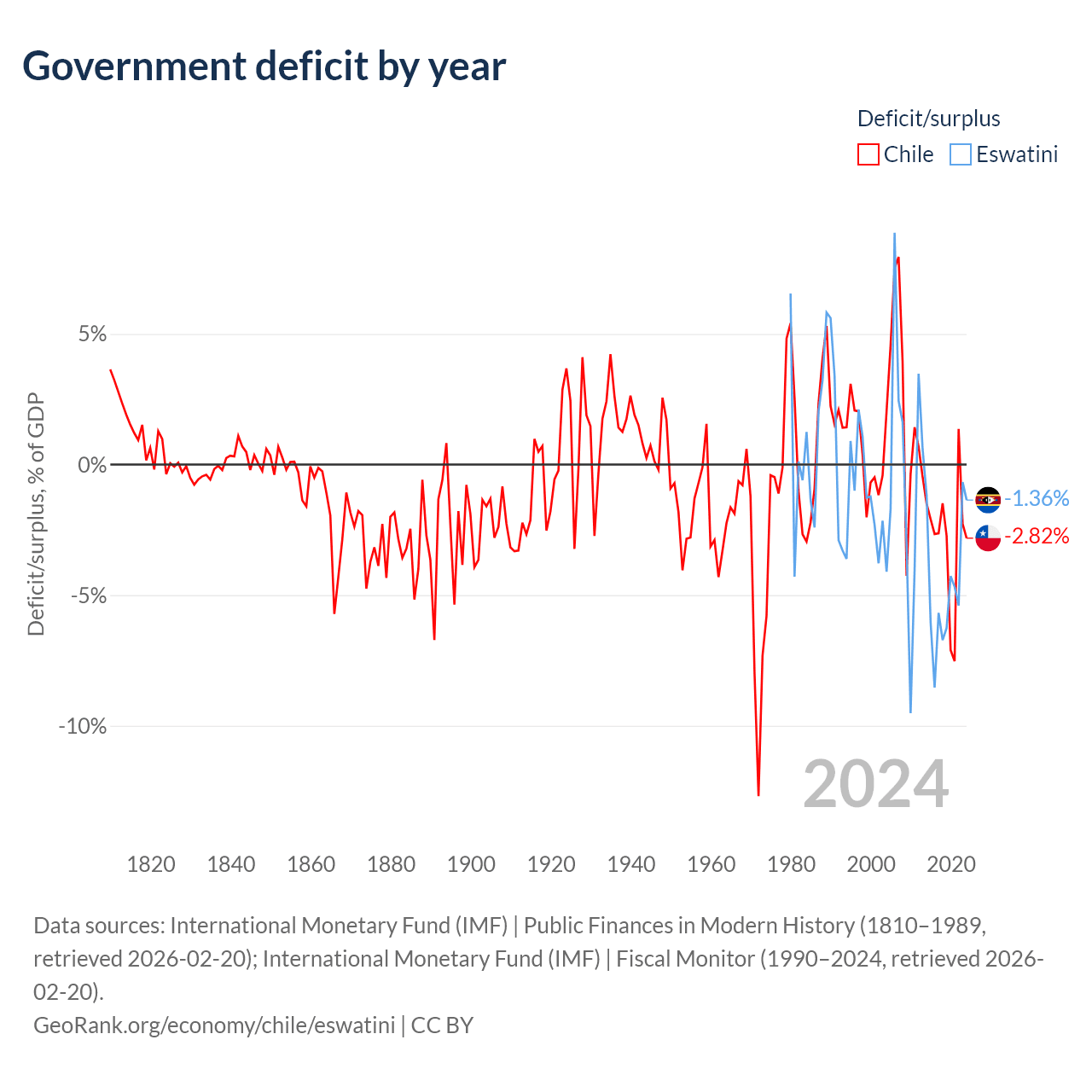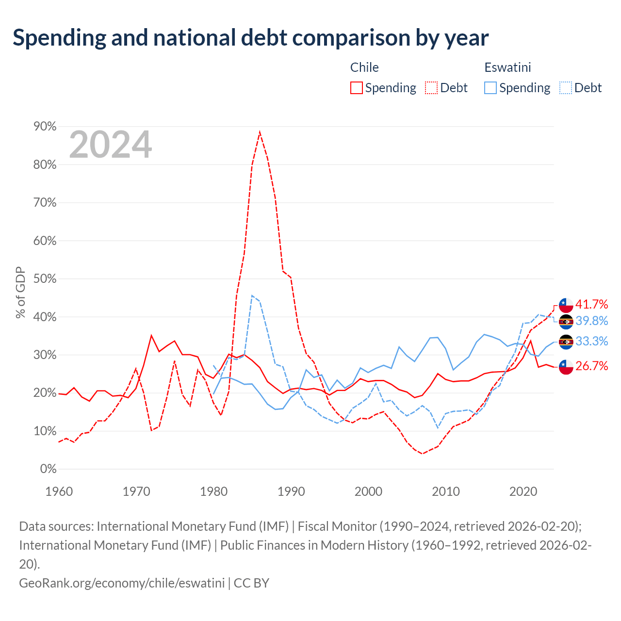 Chile has $138B in government debt (41.7% of GDP), compared to $1.93B (39.8% of GDP) in Eswatini.