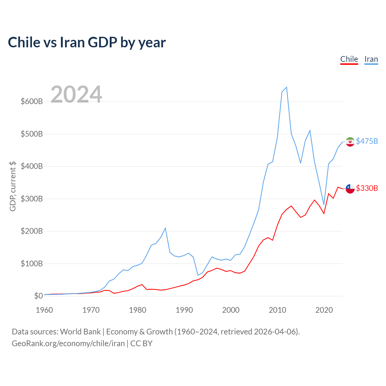 Chile vs Iran GDP by year