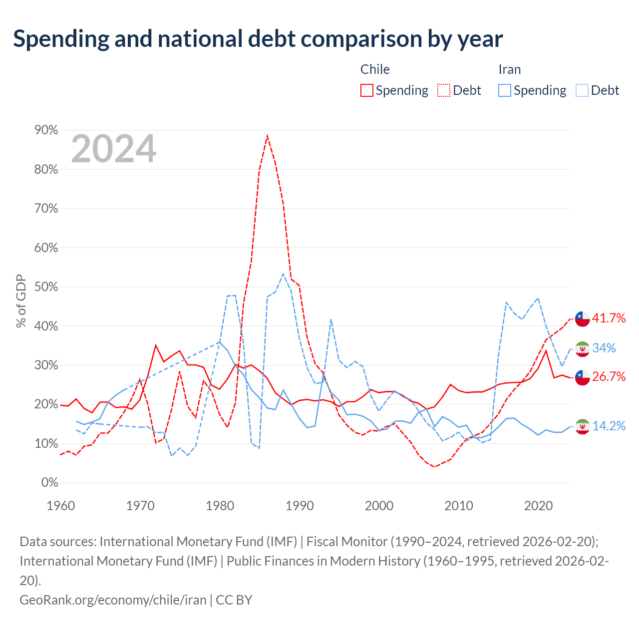 Chile has $138B in government debt (41.7% of GDP), compared to $162B (34% of GDP) in Iran.