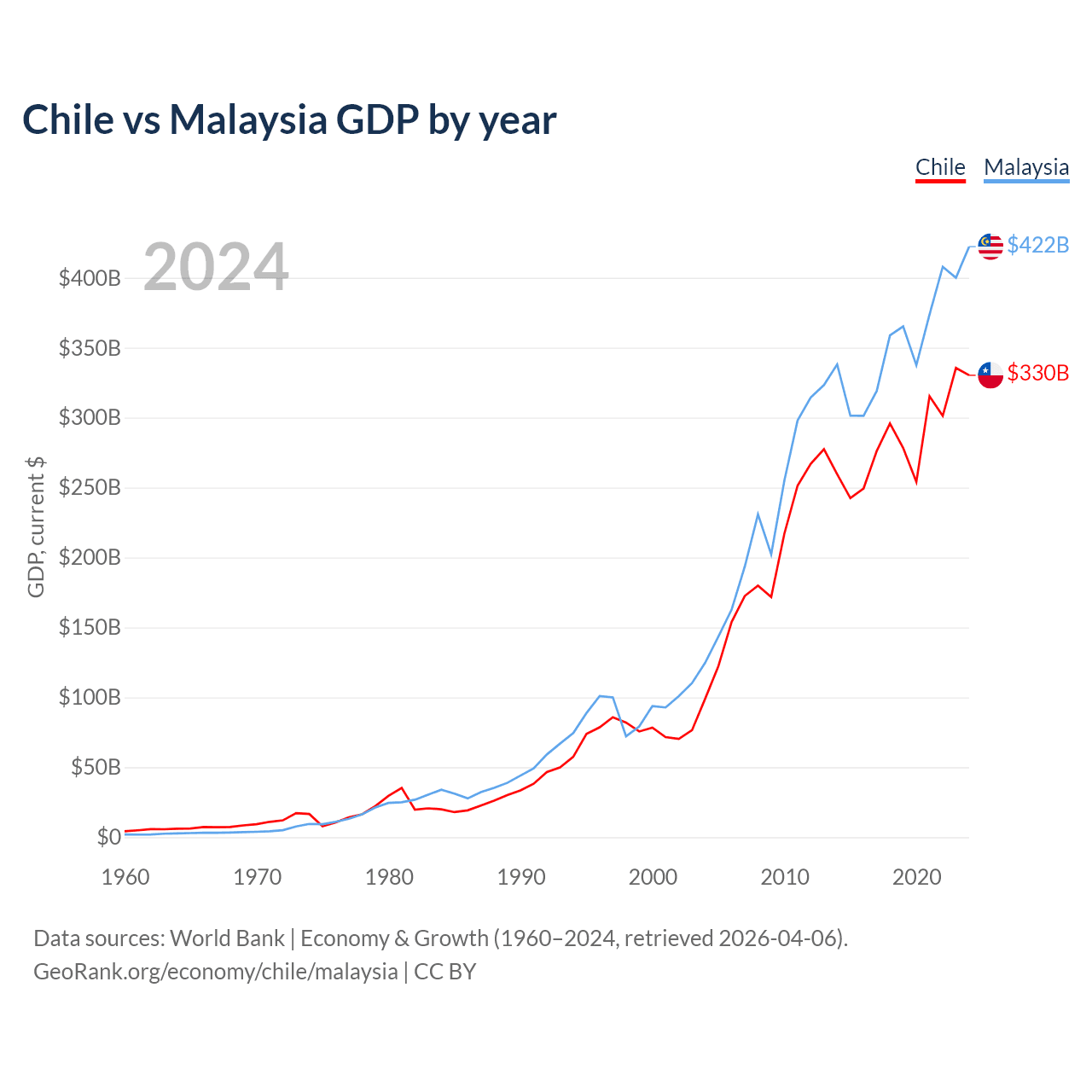 Chile vs Malaysia GDP by year
