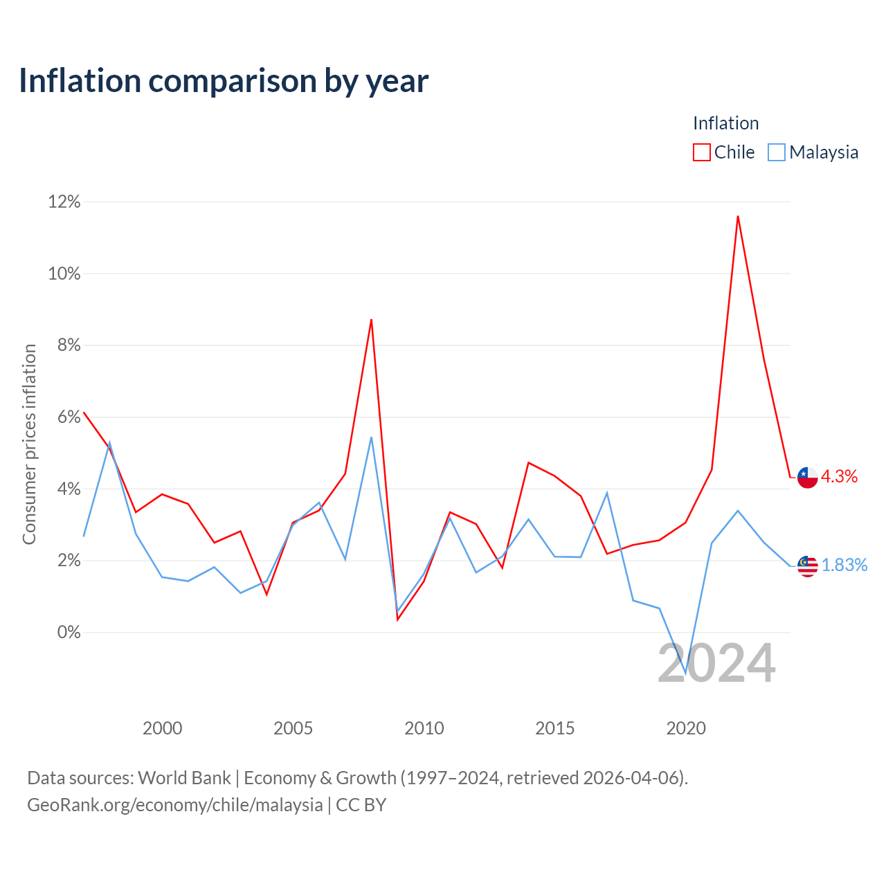 Data sources: World Bank | Economy & Growth (1960–2024, retrieved 2026-04-06).