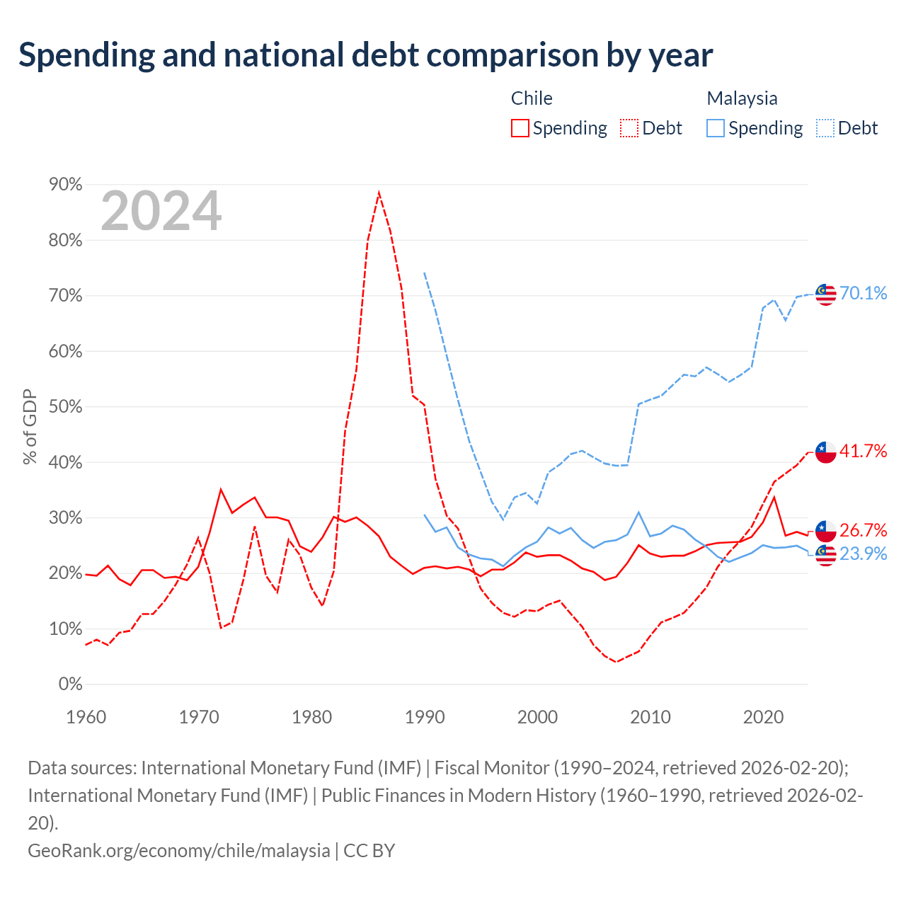 - International Monetary Fund (IMF) | Fiscal Monitor (1990–2024, retrieved 2026-02-20)