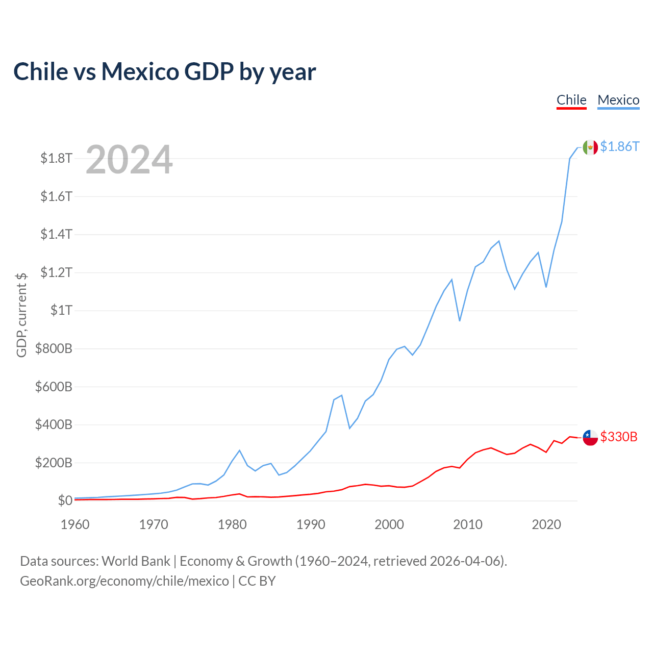 Chile vs Mexico GDP by year