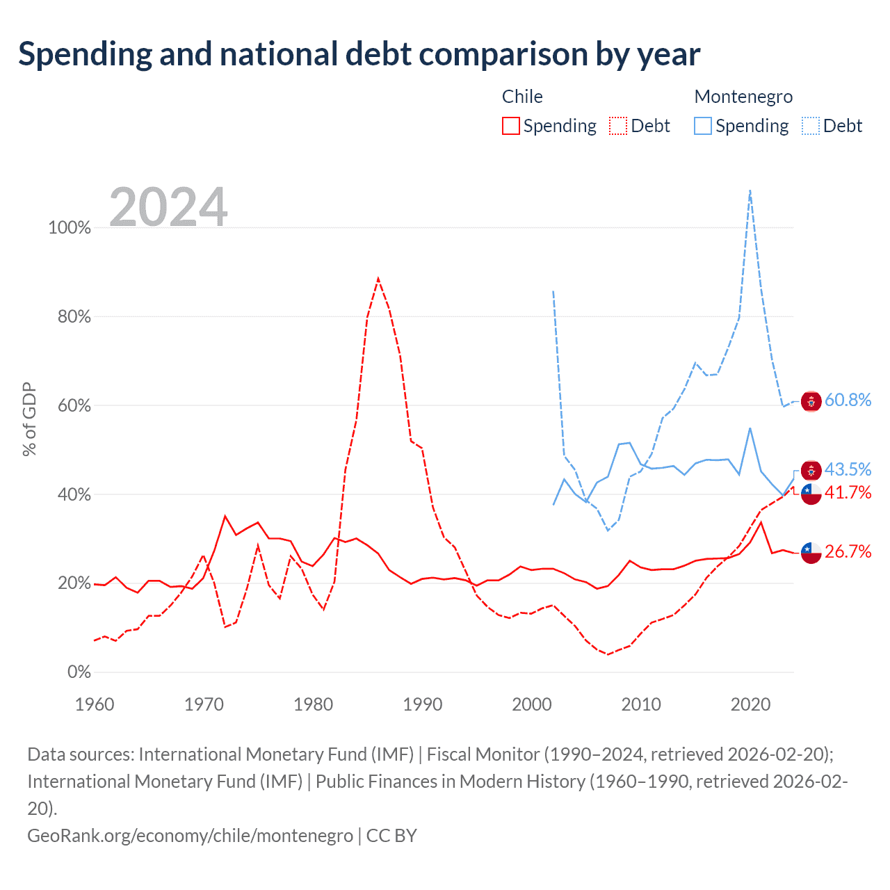 Chile has $138B in government debt (41.7% of GDP), compared to $5.02B (60.8% of GDP) in Montenegro.