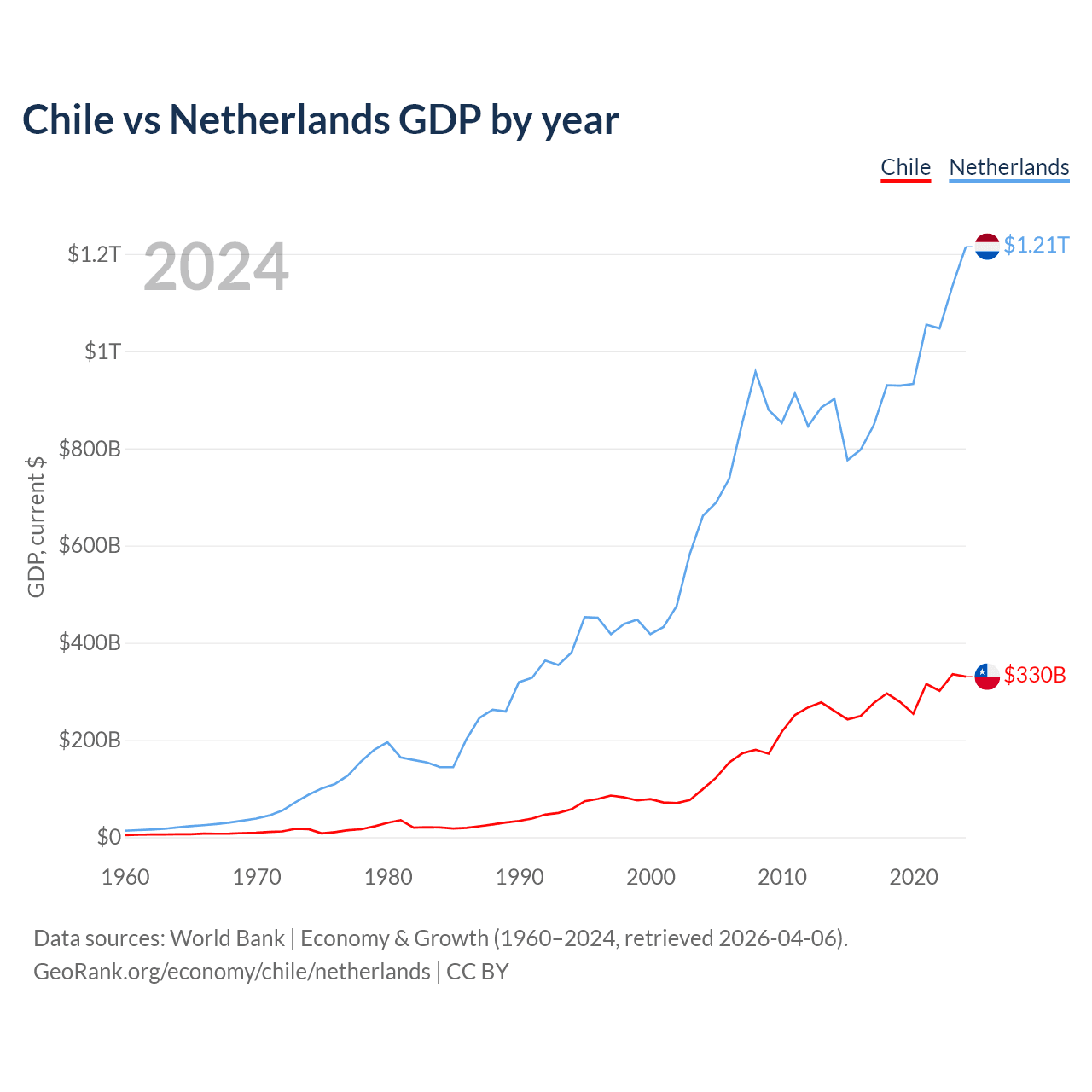 Chile vs Netherlands GDP by year