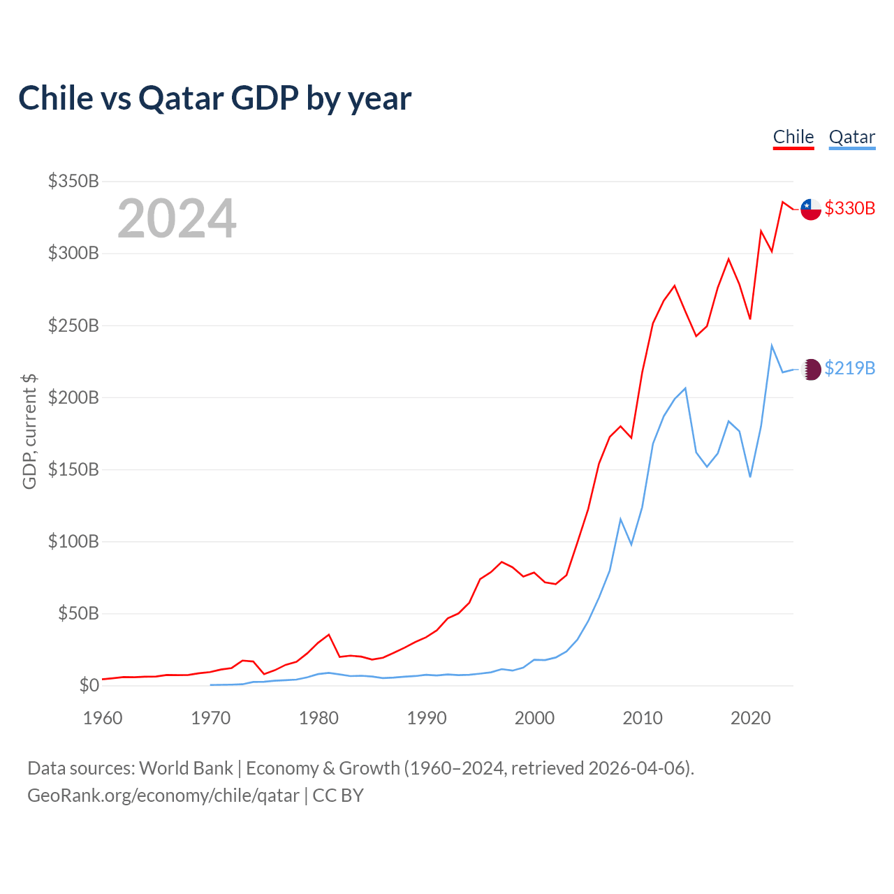 Chile vs Qatar GDP by year