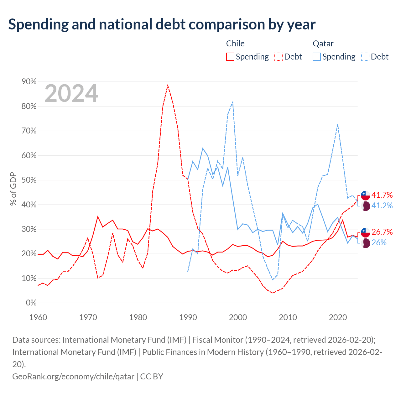 Chile has $138B in government debt (41.7% of GDP), compared to $90.2B (41.2% of GDP) in Qatar.