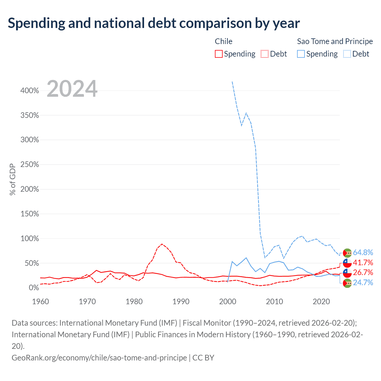 Chile has $138B in government debt (41.7% of GDP), compared to $533M (64.8% of GDP) in Sao Tome and Principe.