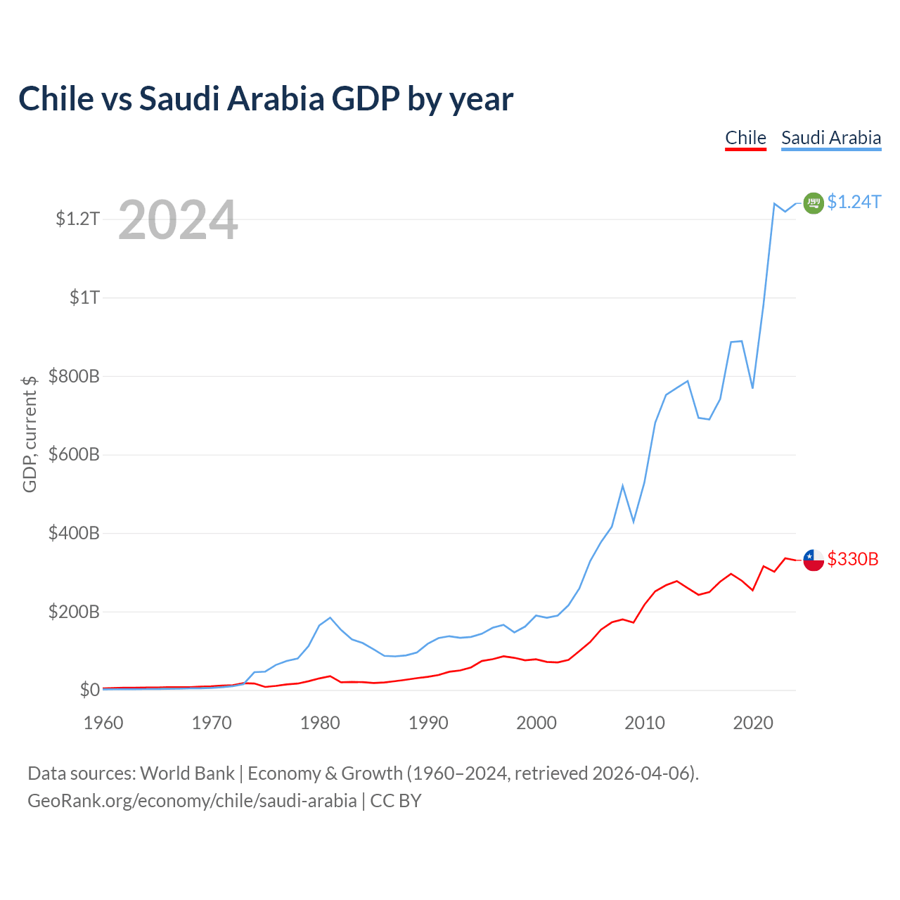 Chile vs Saudi Arabia GDP by year
