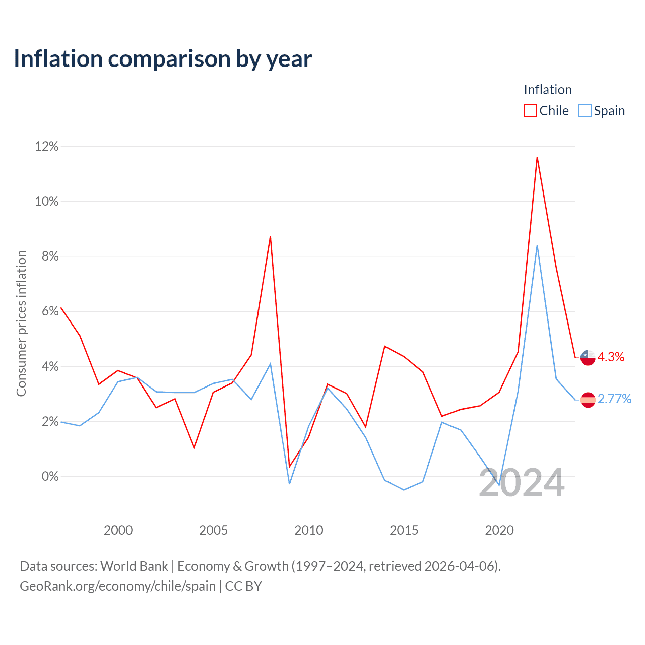 Data sources: World Bank | Economy & Growth (1960–2024, retrieved 2026-04-06).