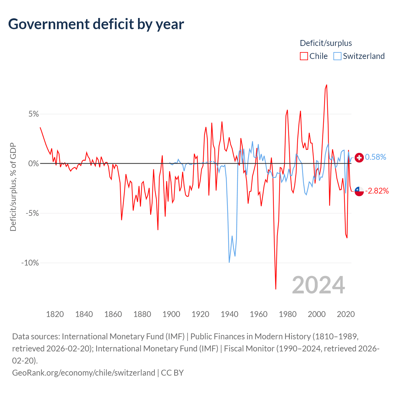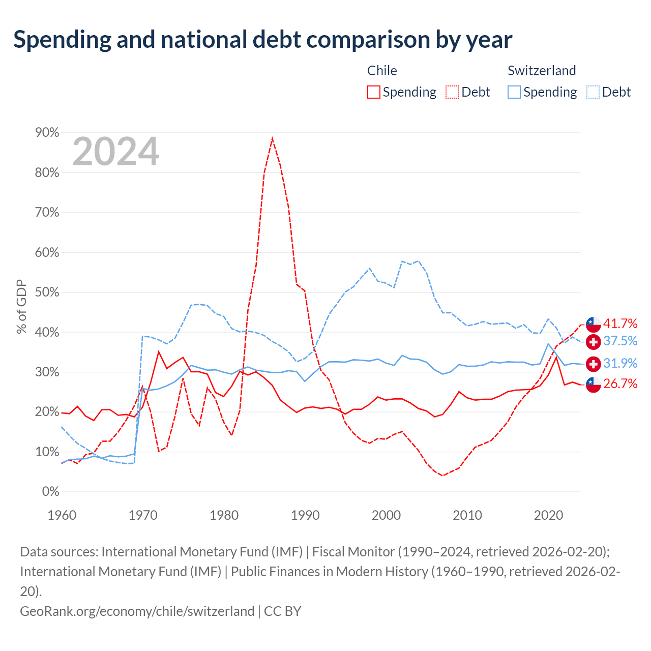 Chile has $138B in government debt (41.7% of GDP), compared to $351B (37.5% of GDP) in Switzerland.