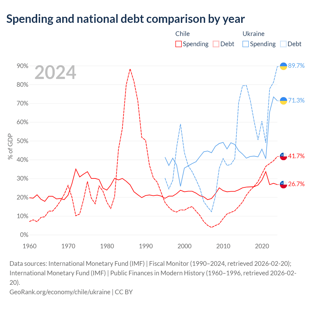 Chile has $138B in government debt (41.7% of GDP), compared to $171B (89.7% of GDP) in Ukraine.