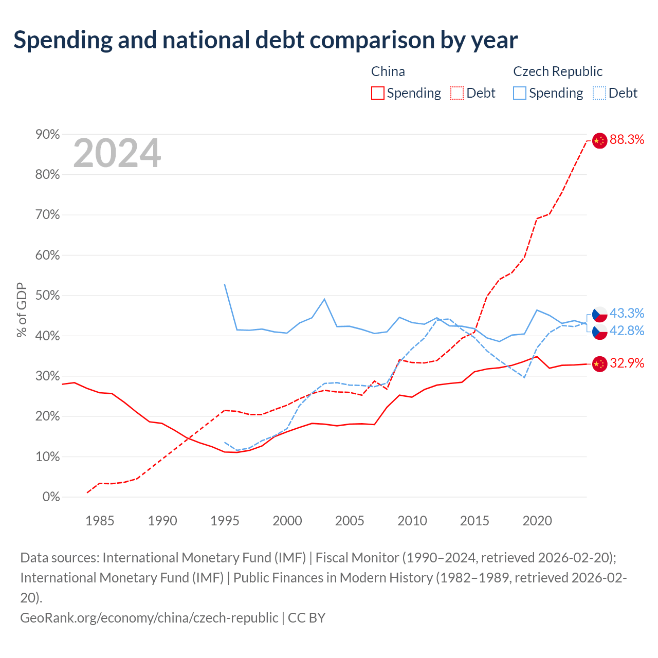 - International Monetary Fund (IMF) | Fiscal Monitor (1990–2024, retrieved 2026-02-20)