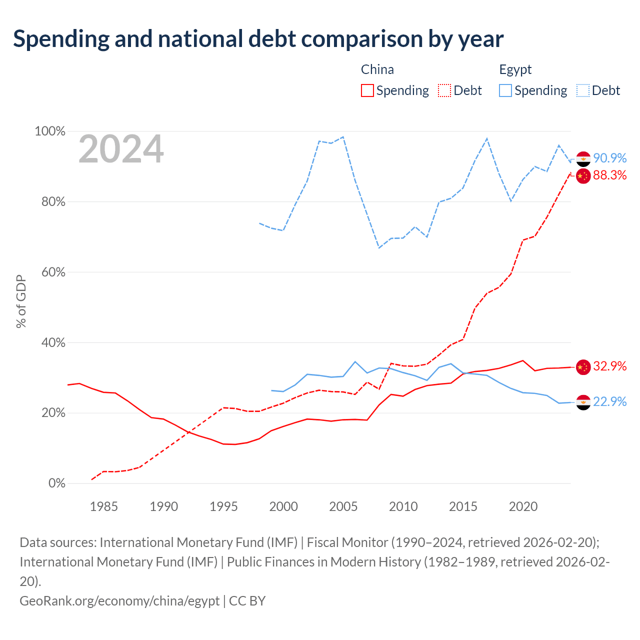 - International Monetary Fund (IMF) | Fiscal Monitor (1990–2024, retrieved 2026-02-20)