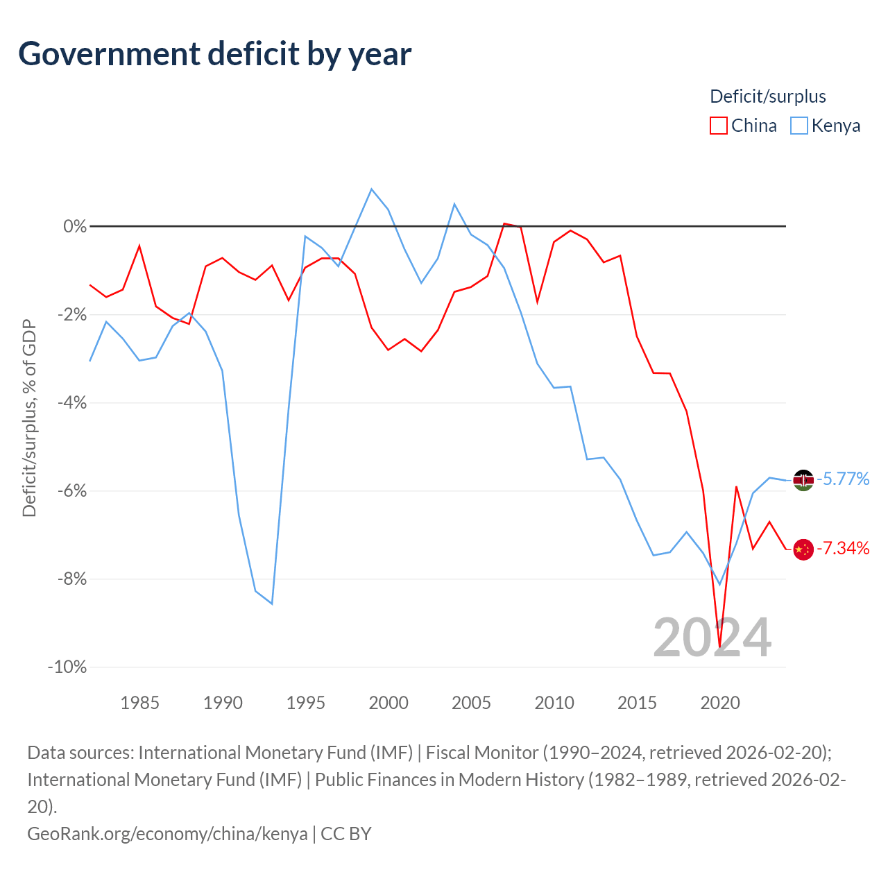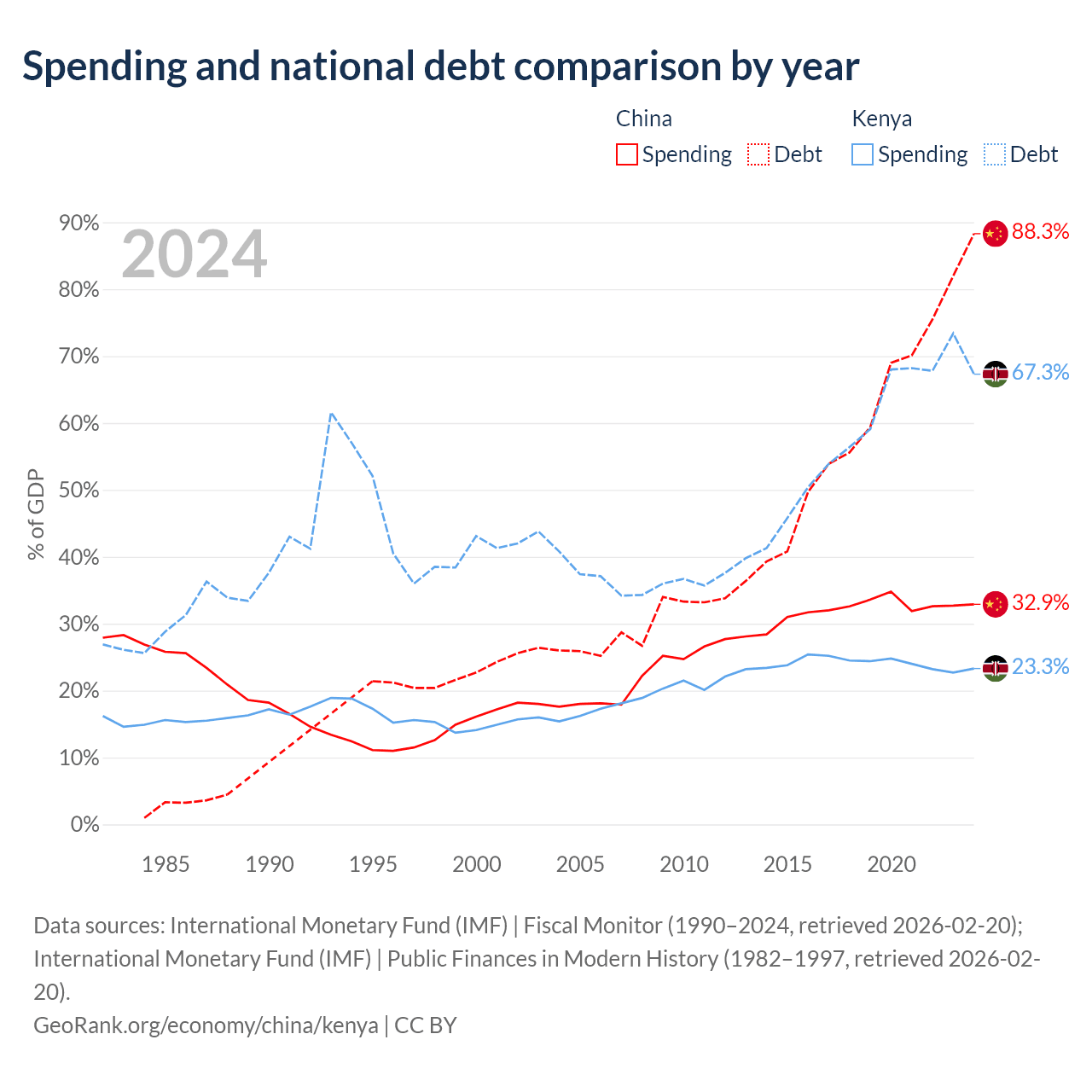 China has $16.6T in government debt (88.3% of GDP), compared to $81B (67.3% of GDP) in Kenya.