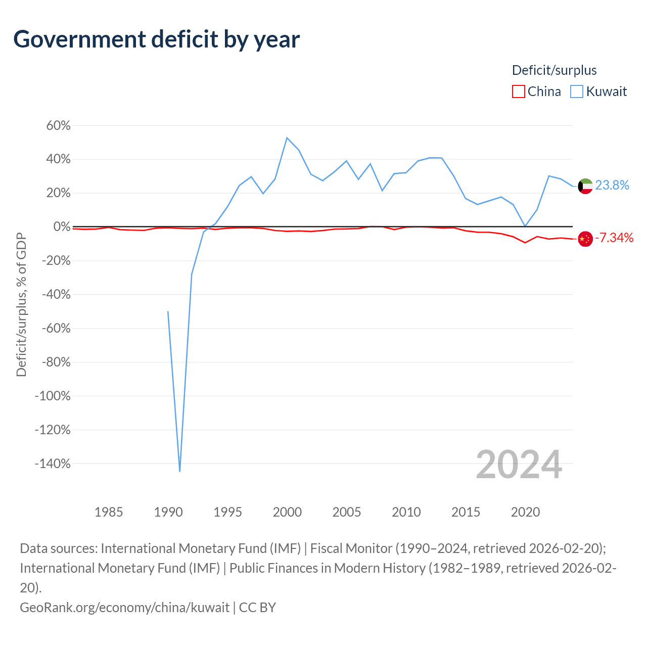 - International Monetary Fund (IMF) | Fiscal Monitor (1990–2024, retrieved 2026-02-20)