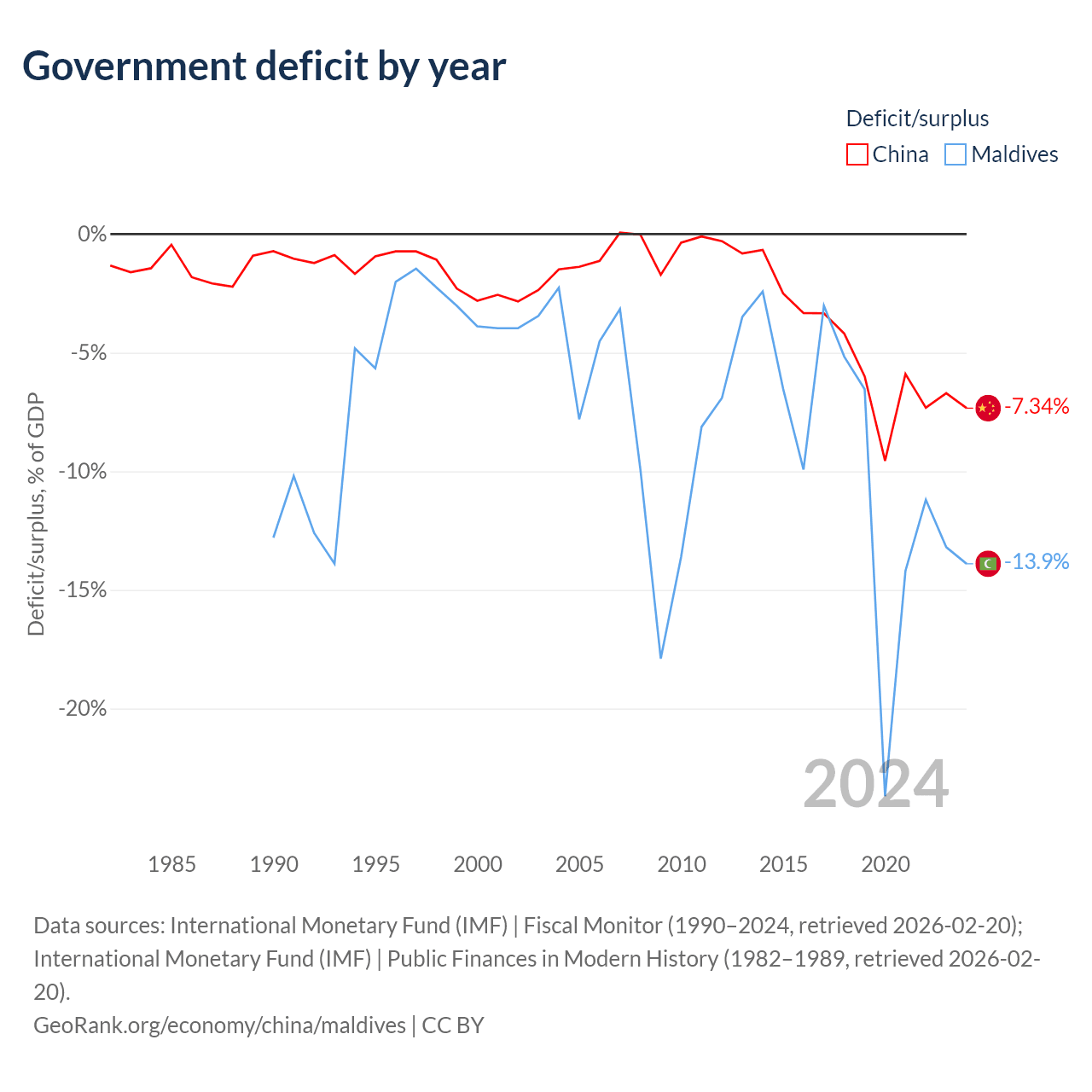- International Monetary Fund (IMF) | Fiscal Monitor (1990–2024, retrieved 2026-02-20)