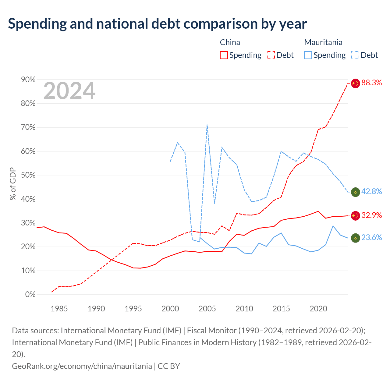 - International Monetary Fund (IMF) | Fiscal Monitor (1990–2024, retrieved 2026-02-20)