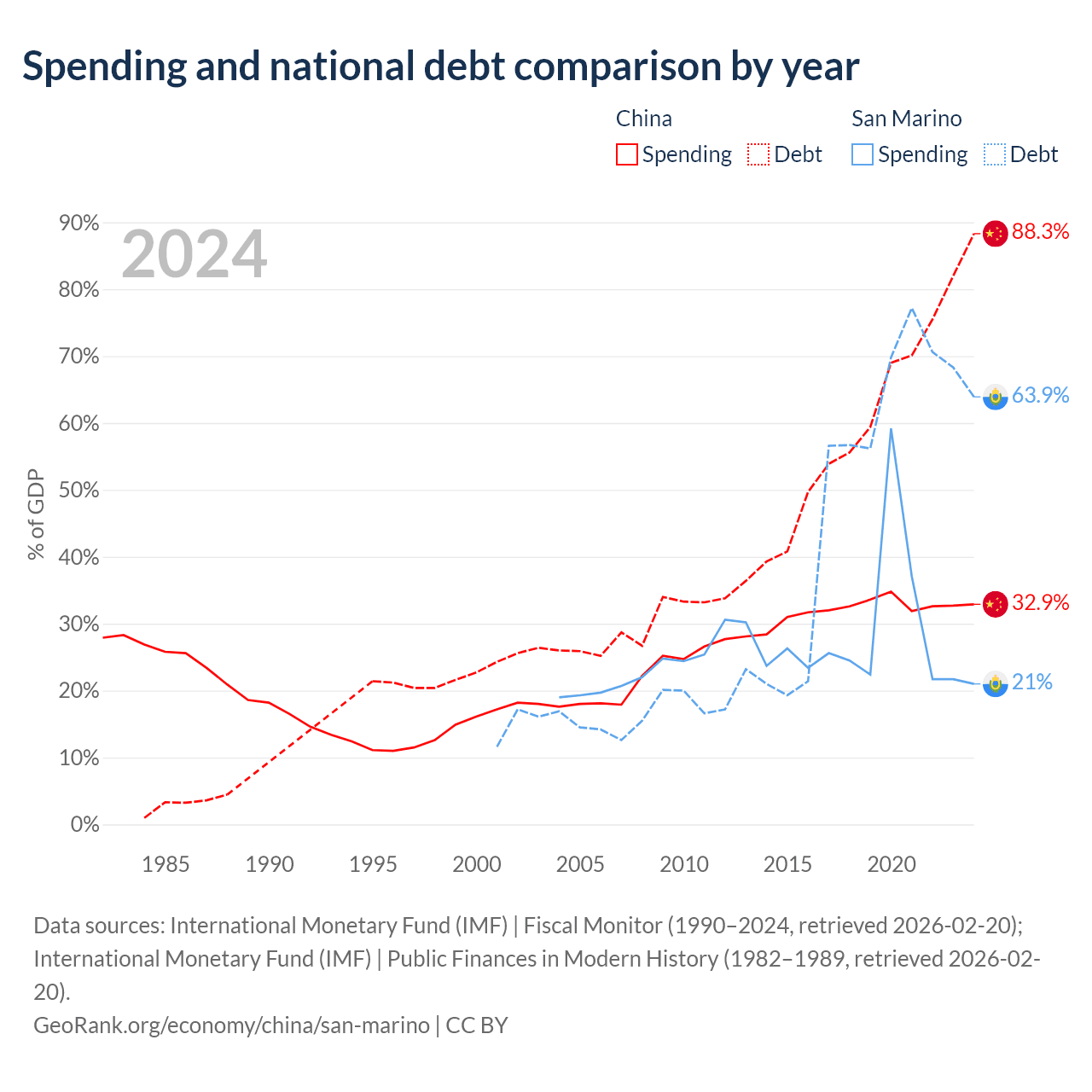 - International Monetary Fund (IMF) | Fiscal Monitor (1990–2024, retrieved 2026-02-20)